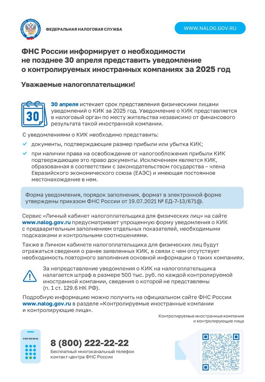 В I квартале 2026 года налоговые органы проведут массовый расчет транспортного, земельного налогов и налога на имущество организаций (для объектов, налоговая база по которым определяется по кадастровой стоимости) за 2025 год. После расчета организациям направят сообщения об исчисленных налогах, которые затем отразятся на ЕНС.